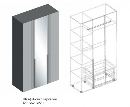 Вита Шкаф 3-ств с зеркалом 1200х520х2200 МДФ (Велес)