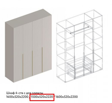 Тефия Шкаф 4-ств для одежды 1500х520х2200 МДФ (Велес)